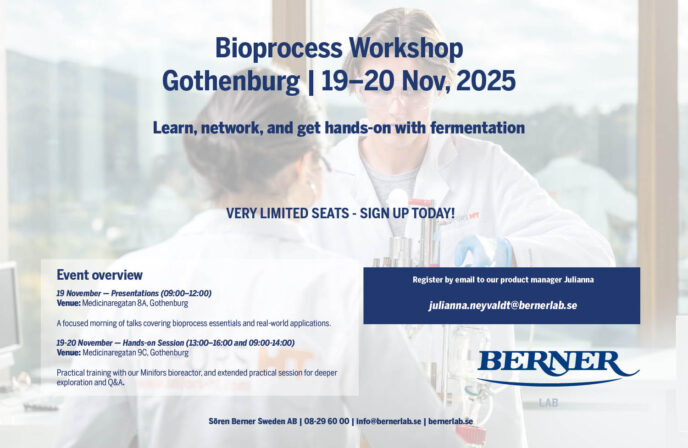 Join Berner Lab for a two-part workshop featuring expert talks and practical sessions on bioprocessing—perfect for anyone looking to deepen their fermentation know-how and test a bioreactor in practice.