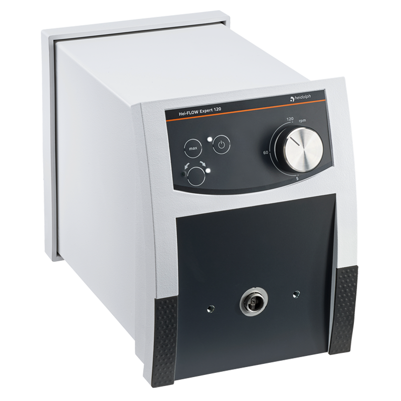 Hei-FLOW Expert ger bättre kontroll och möjlighet till extern styrning, men är fortfarande kompakt och användarvänlig. Beroende på pumphuvud täcker den 0,5–936 ml/min med enkelkanaliga huvuden och 0,005–277 ml/min med flerkanaliga huvuden, vid 5–120 rpm och en reglernoggrannhet på ±0,5 % för mer precisa processer. Ett inbyggt analogt gränssnitt gör att alla funktioner kan styras externt, och en valbar fotbrytare frigör händerna för att hantera slangar och kärl. Det gör Expert till ett starkt alternativ för semi-automatiserade arbetsflöden där reproducerbarhet och ergonomi är viktiga.